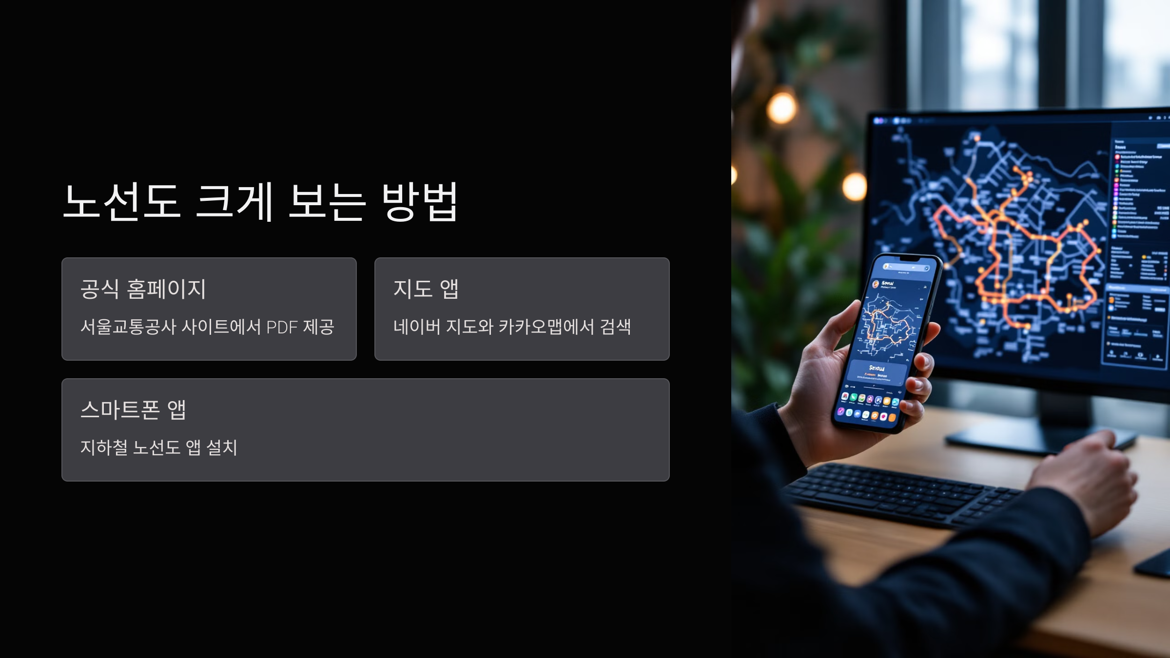 | 스마트폰 앱 | "지하철 종결자" 등 지하철 앱 이용 |