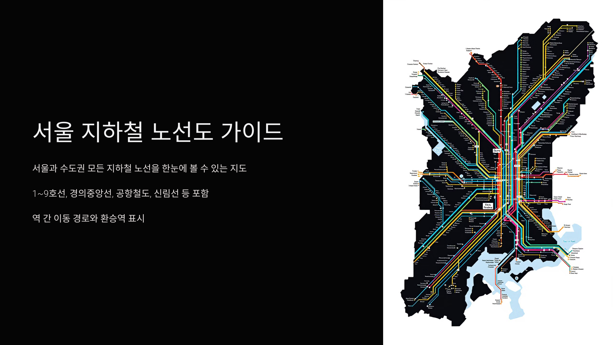 서울 지하철은 1호선부터 9호선, 신분당선, 경의중앙선 등 다양한 노선이 있어요. 하지만 노선이 복잡해서 작은 화면으로 보기에는 불편할 때가 많죠.