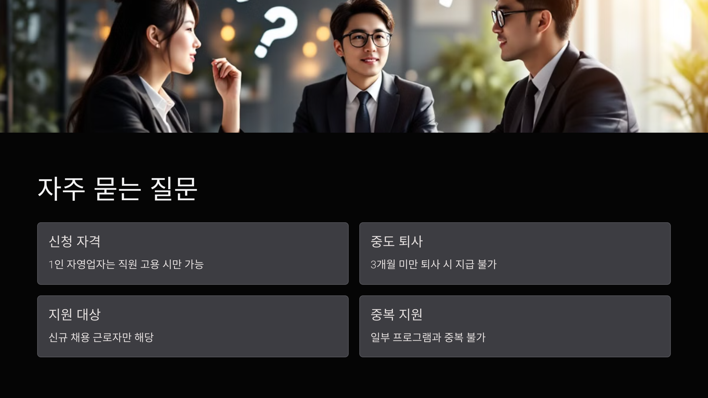A3. 신규 채용 근로자만 대상이에요. 기존 직원은 지원 대상에서 제외돼요.