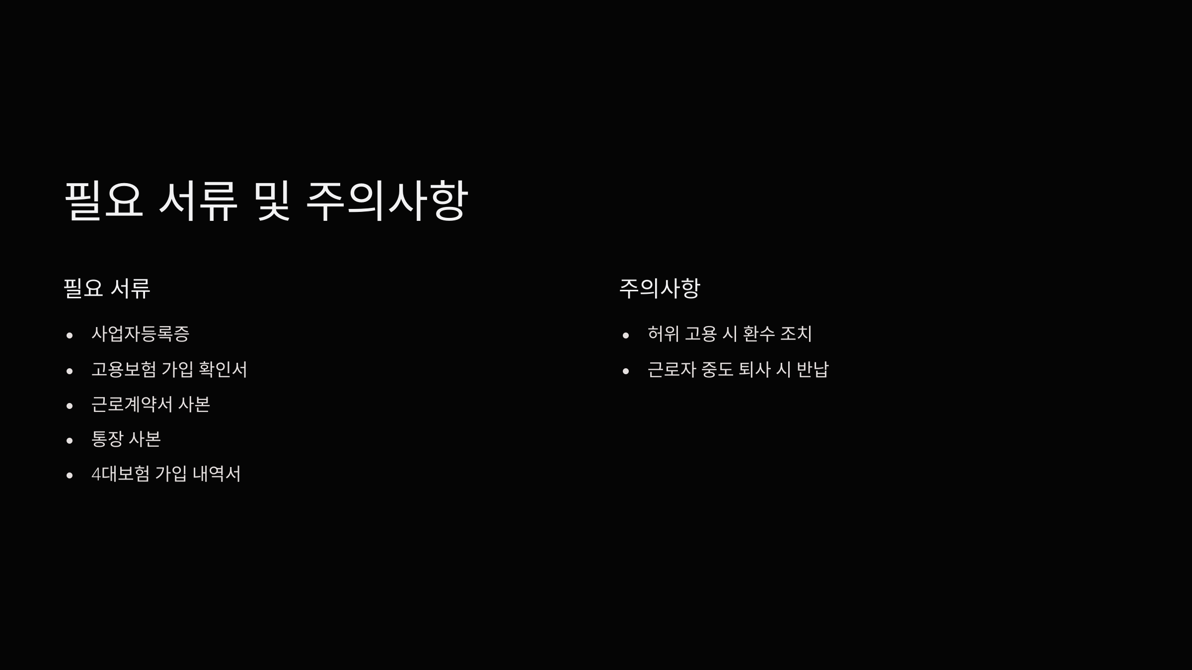 - 허위 고용 시 환수 조치가 있을 수 있어요.