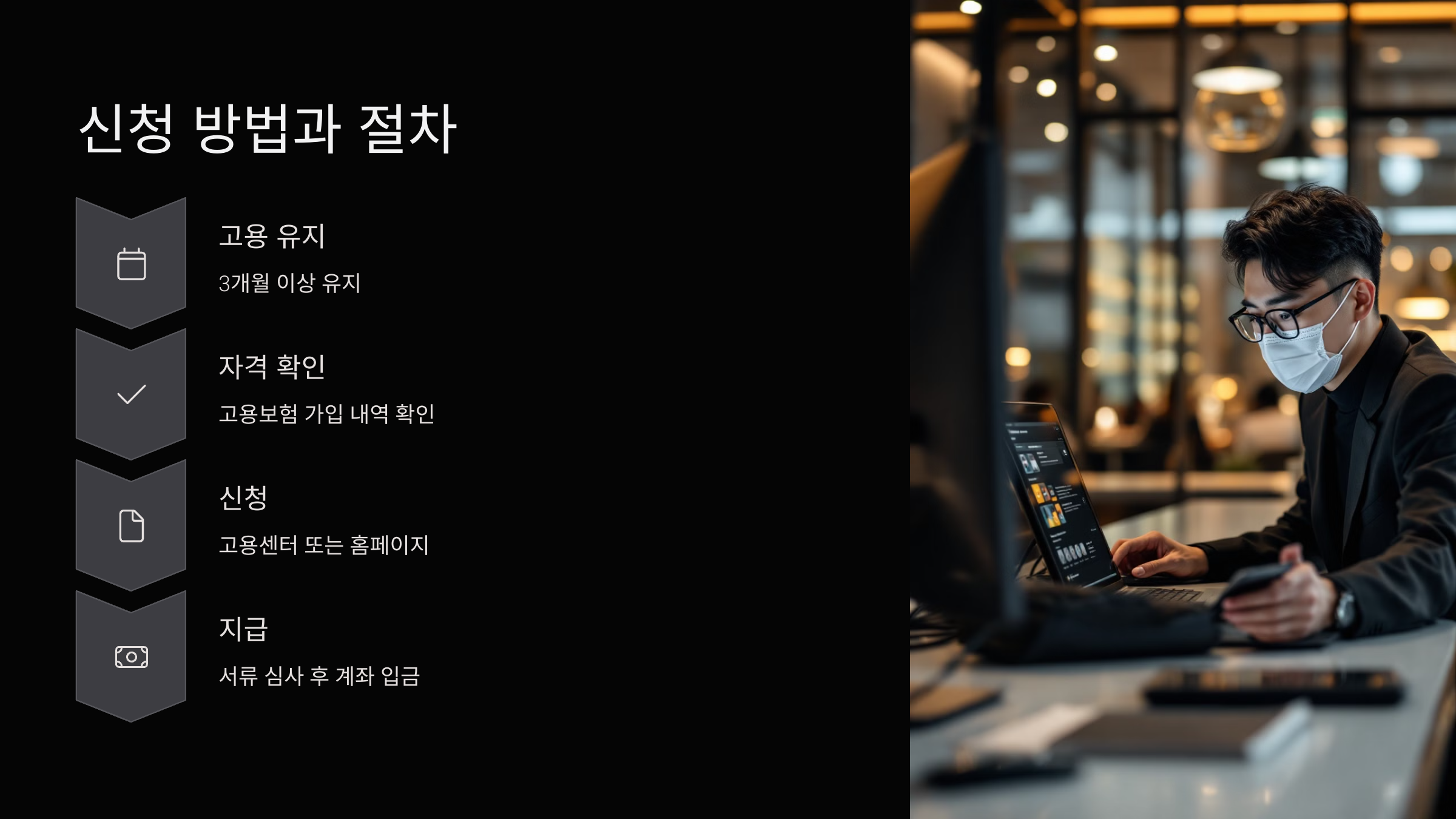 근로자가 3개월 이상 고용보험에 가입된 상태여야 신청 가능하고, 고용센터에서 자격 심사를 거쳐 지원금이 지급돼요.