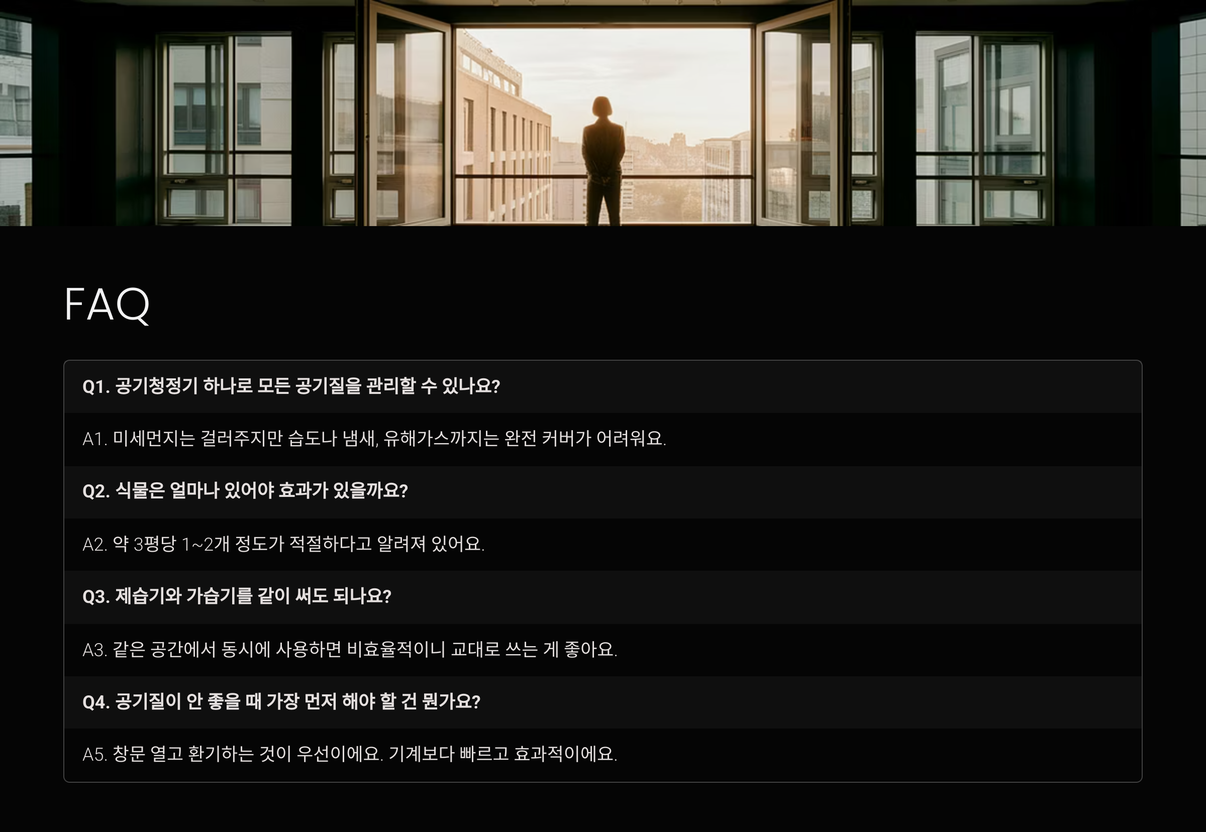 A5. 창문 열고 환기하는 것이 우선이에요. 기계보다 빠르고 효과적이에요.