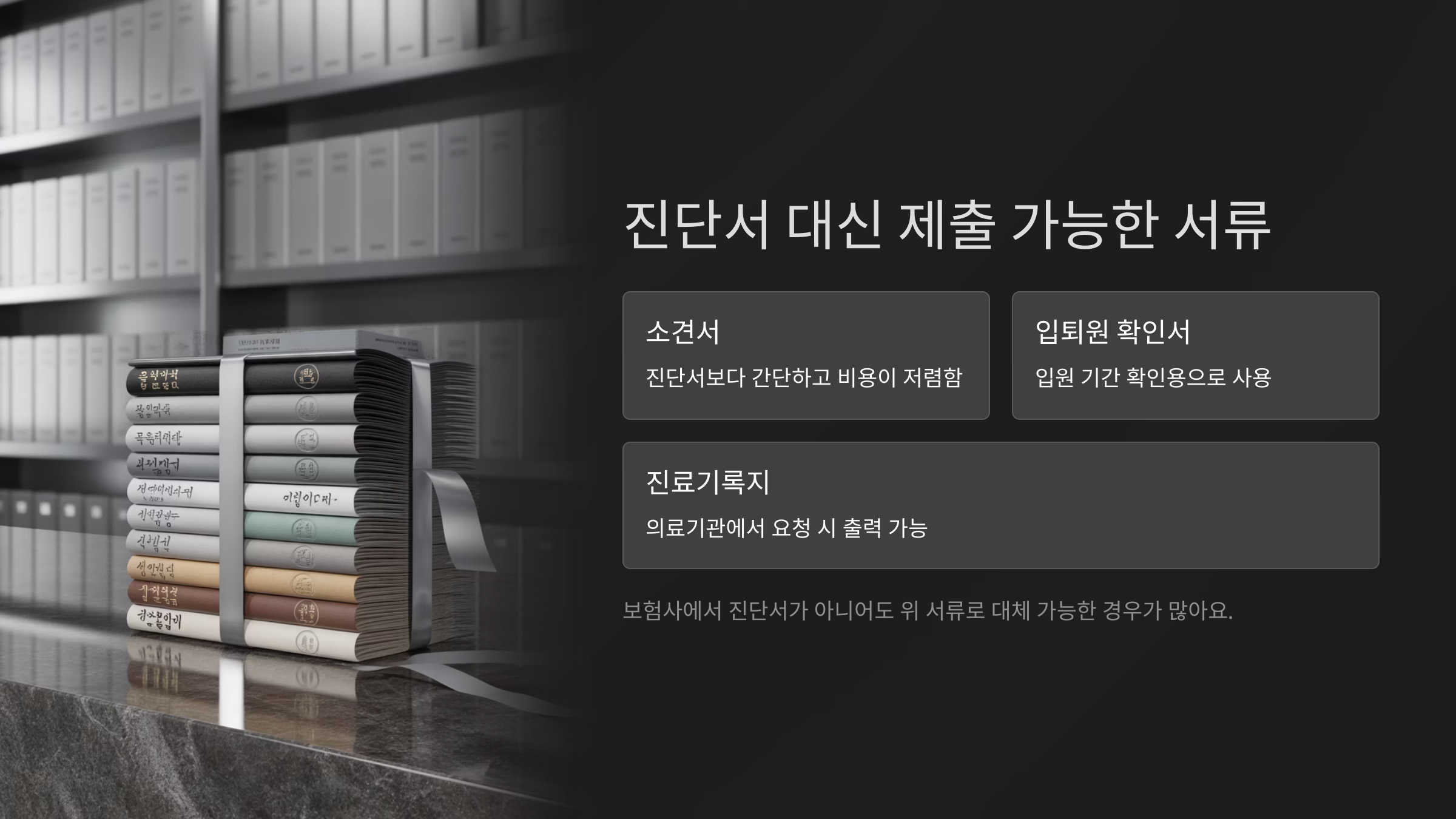 보험사에서 진단서가 아니어도 위 서류로 대체 가능한 경우가 많아요.