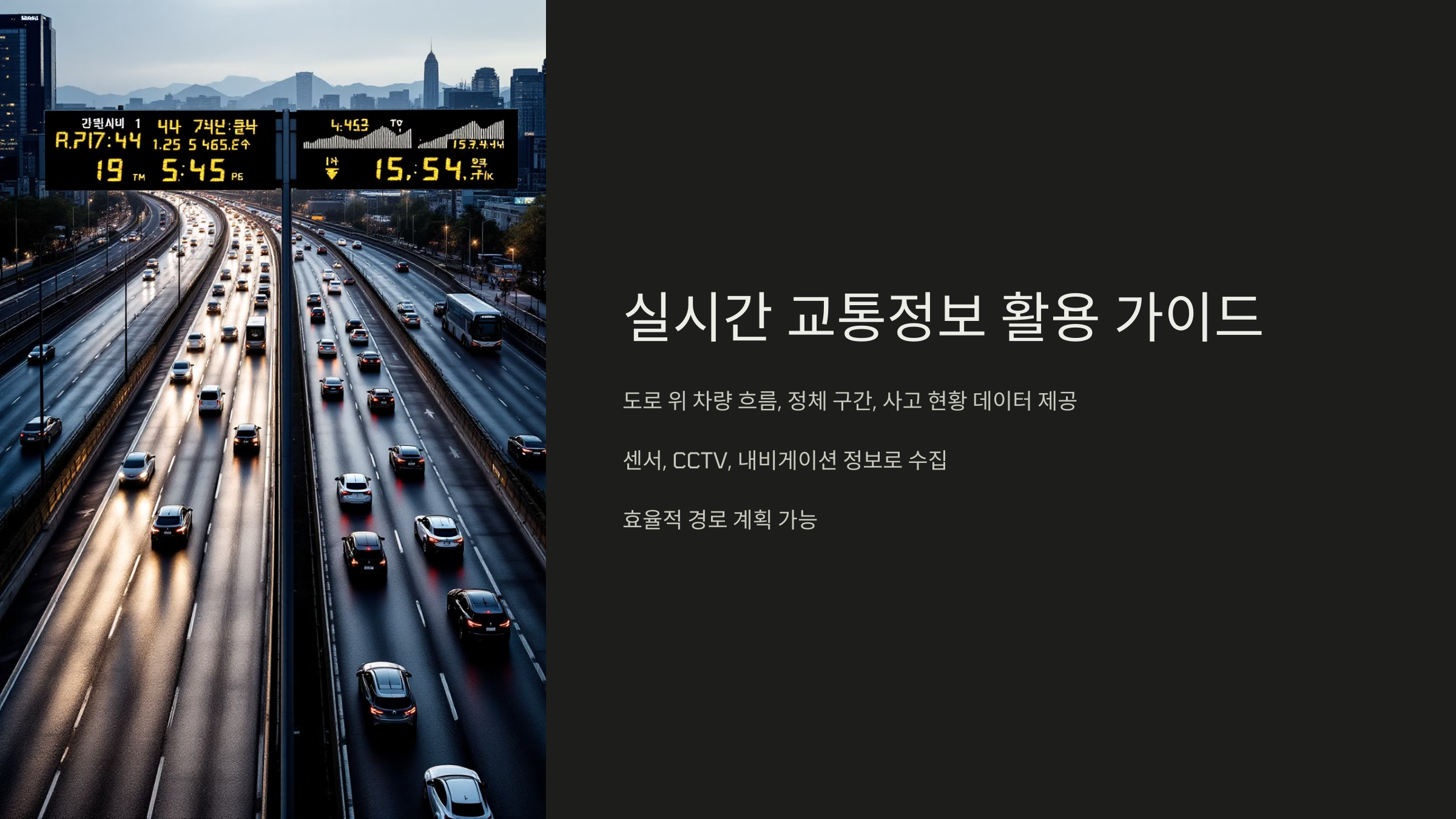 이 글에서는 실시간 교통정보를 확인할 수 있는 다양한 방법을 국가 기관 웹사이트, 민간 지도 앱 등을 중심으로 정리했습니다.