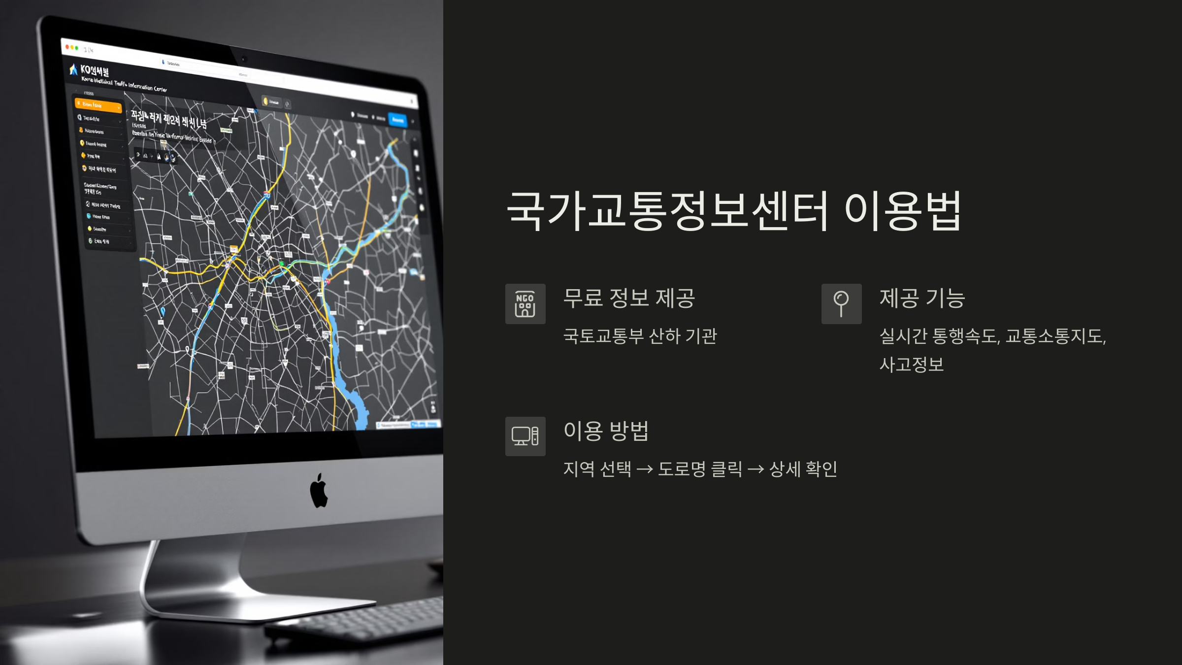 - 고속도로, 간선도로, 시내 주요 도로 교통현황 제공