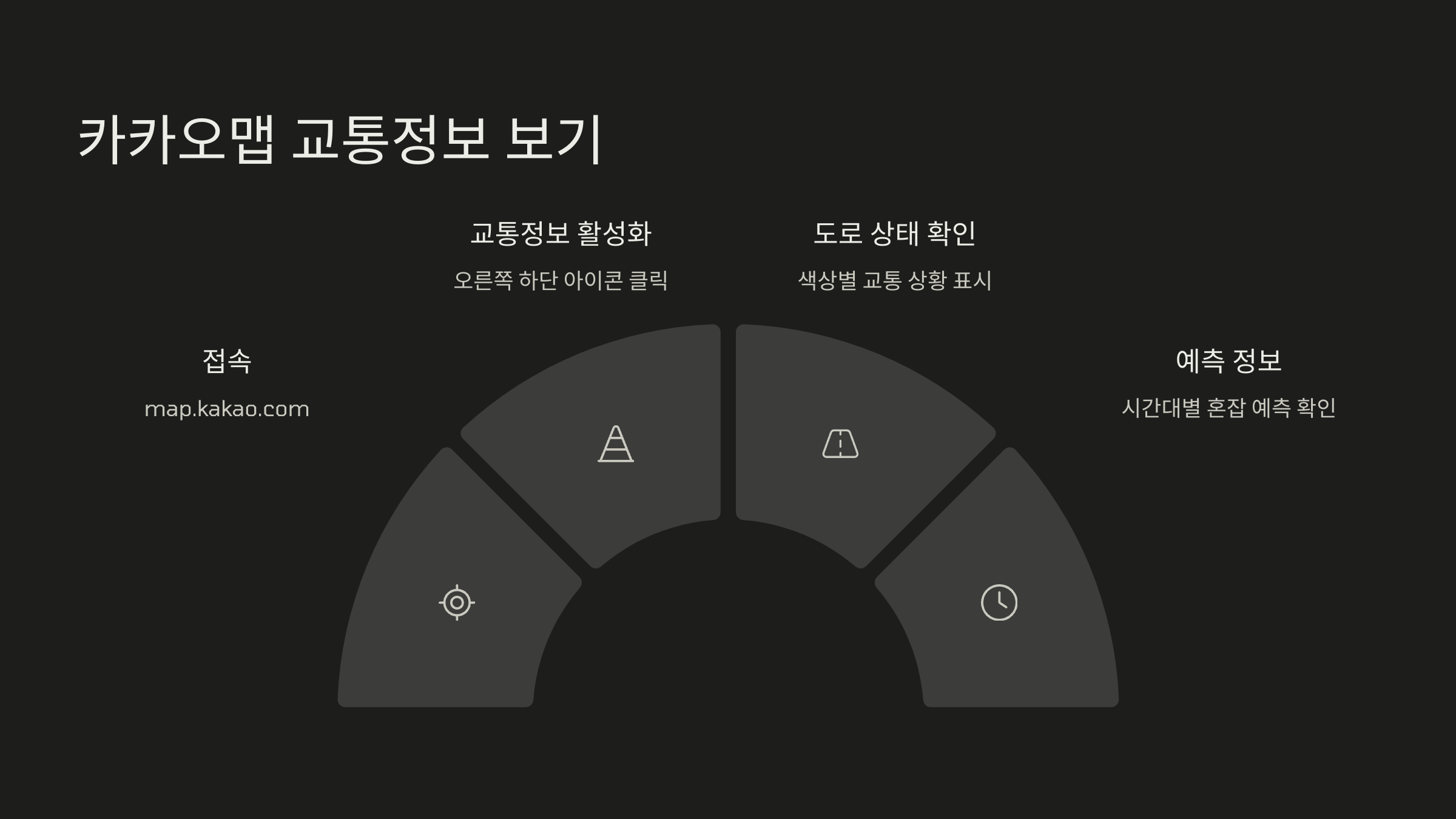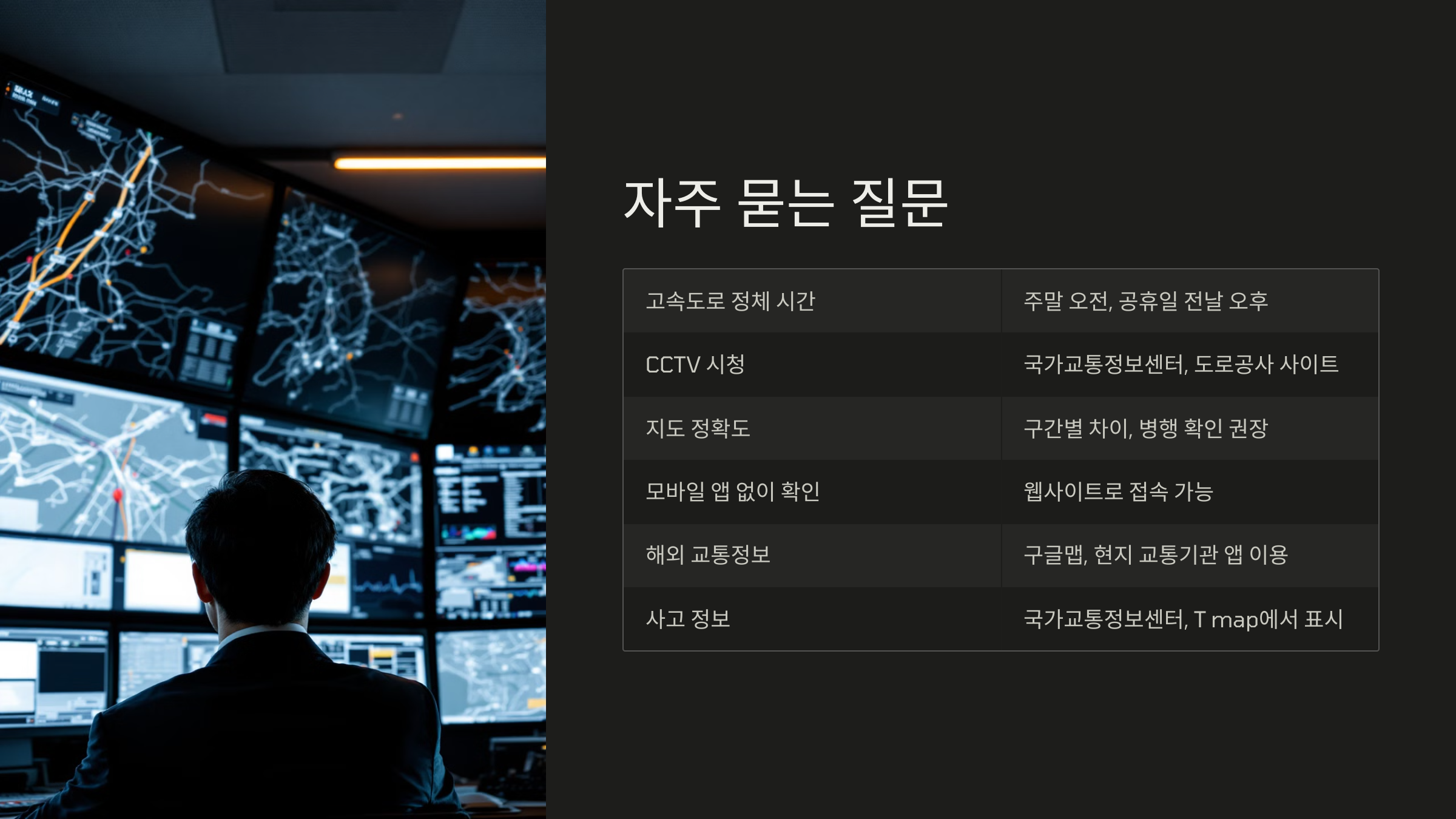 - 고속도로, 간선도로, 시내 주요 도로 교통현황 제공