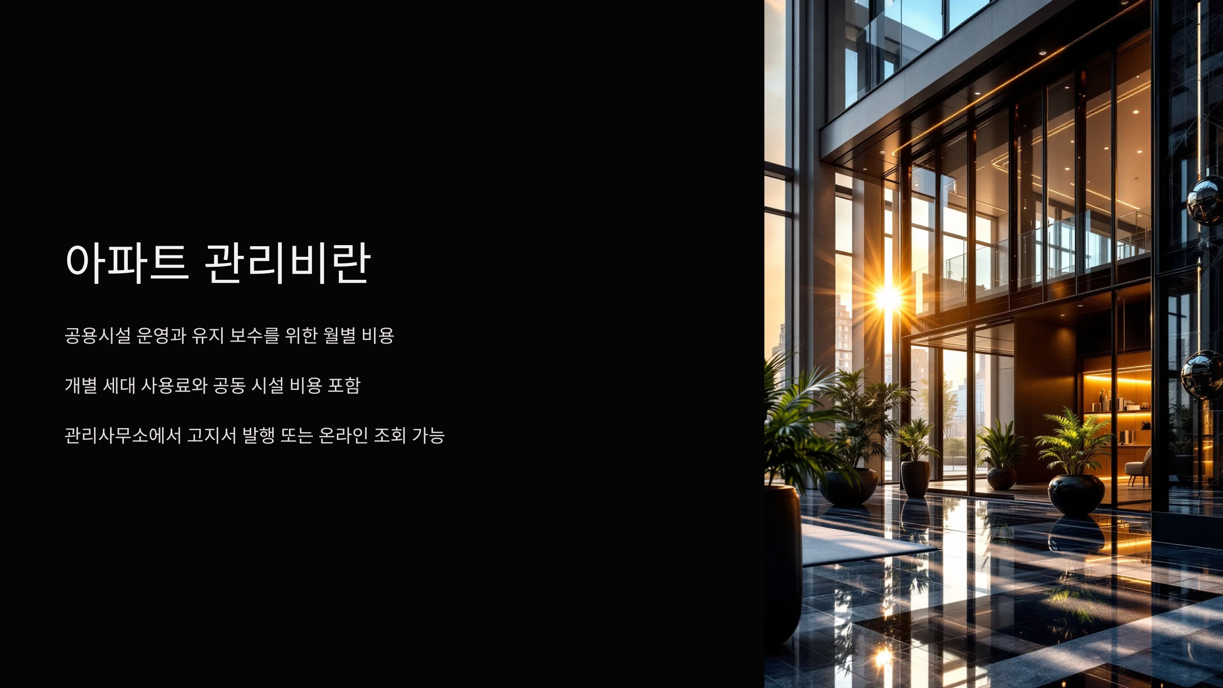 아파트 관리비는 단순한 월세처럼 보일 수 있지만, 사실상 공동주택 운영을 위한 필수 비용이에요. 전기세, 수도세, 경비비, 청소비 등 다양한 항목이 포함되어 있기 때문에 정확한 조회와 납부 방법을 아는 것이 중요하죠.