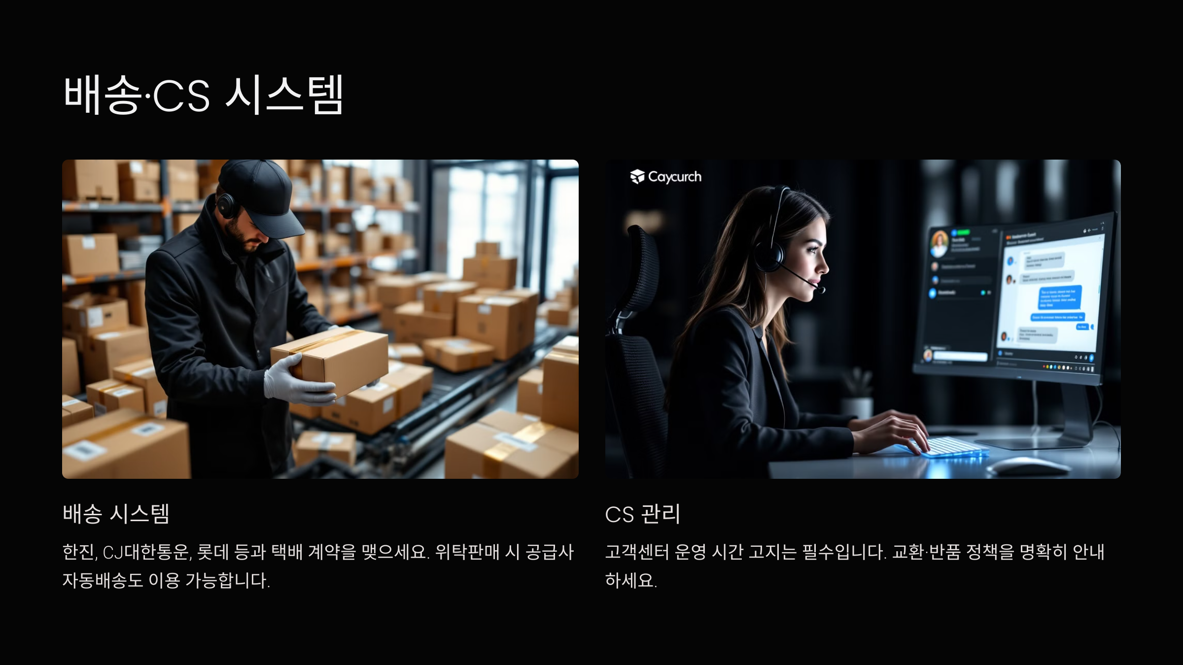 택배사 연동 or 위탁배송 + 문의 대응 세팅