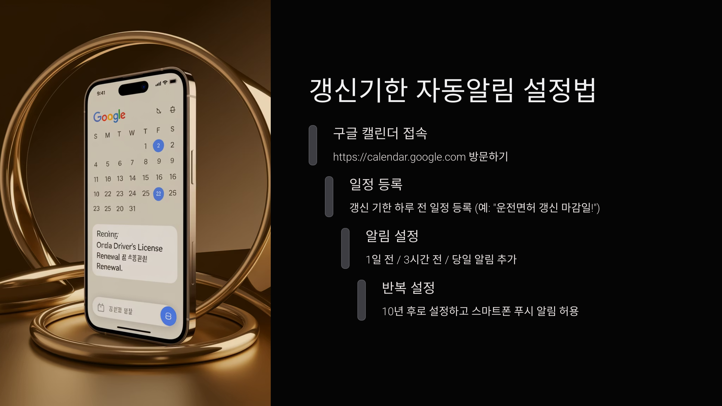 내가 생각했을 때, 운전면허 갱신은 놓치면 불편함이 너무 커서 자동 리마인드 설정은 정말 필수인 것 같아요!