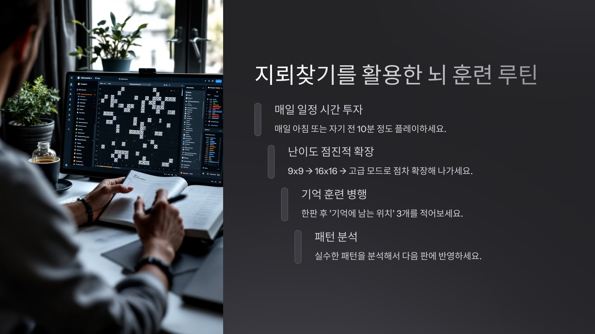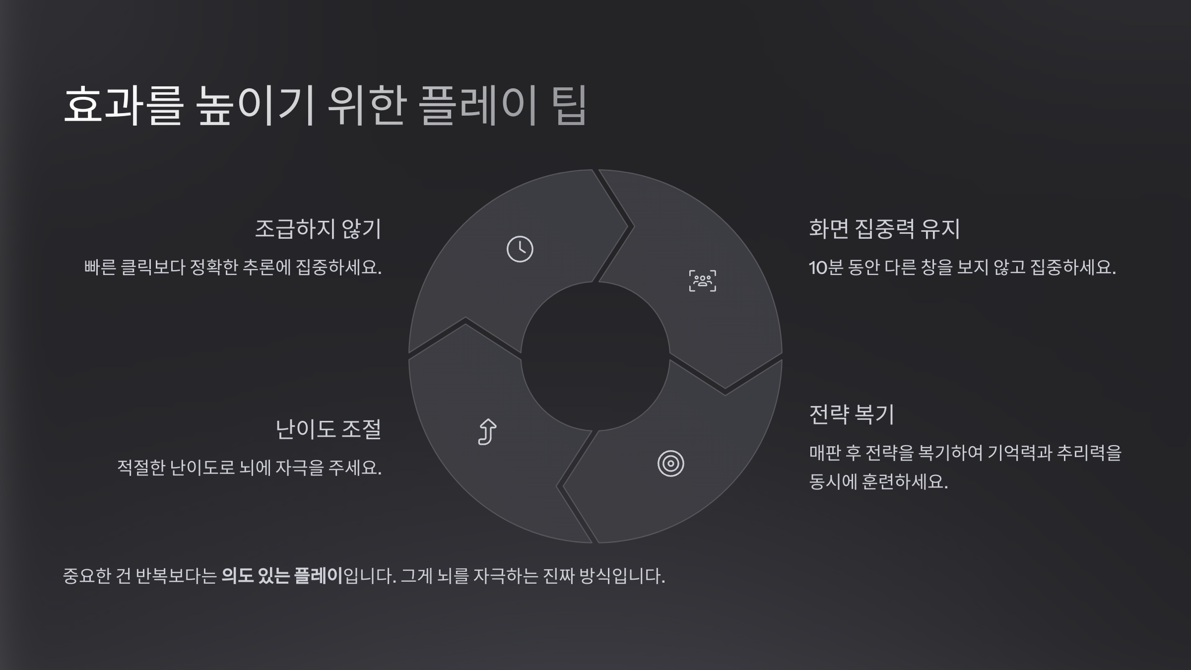 중요한 건 반복보다는 **의도 있는 플레이**예요. 그게 뇌를 자극하는 진짜 방식이니까요.