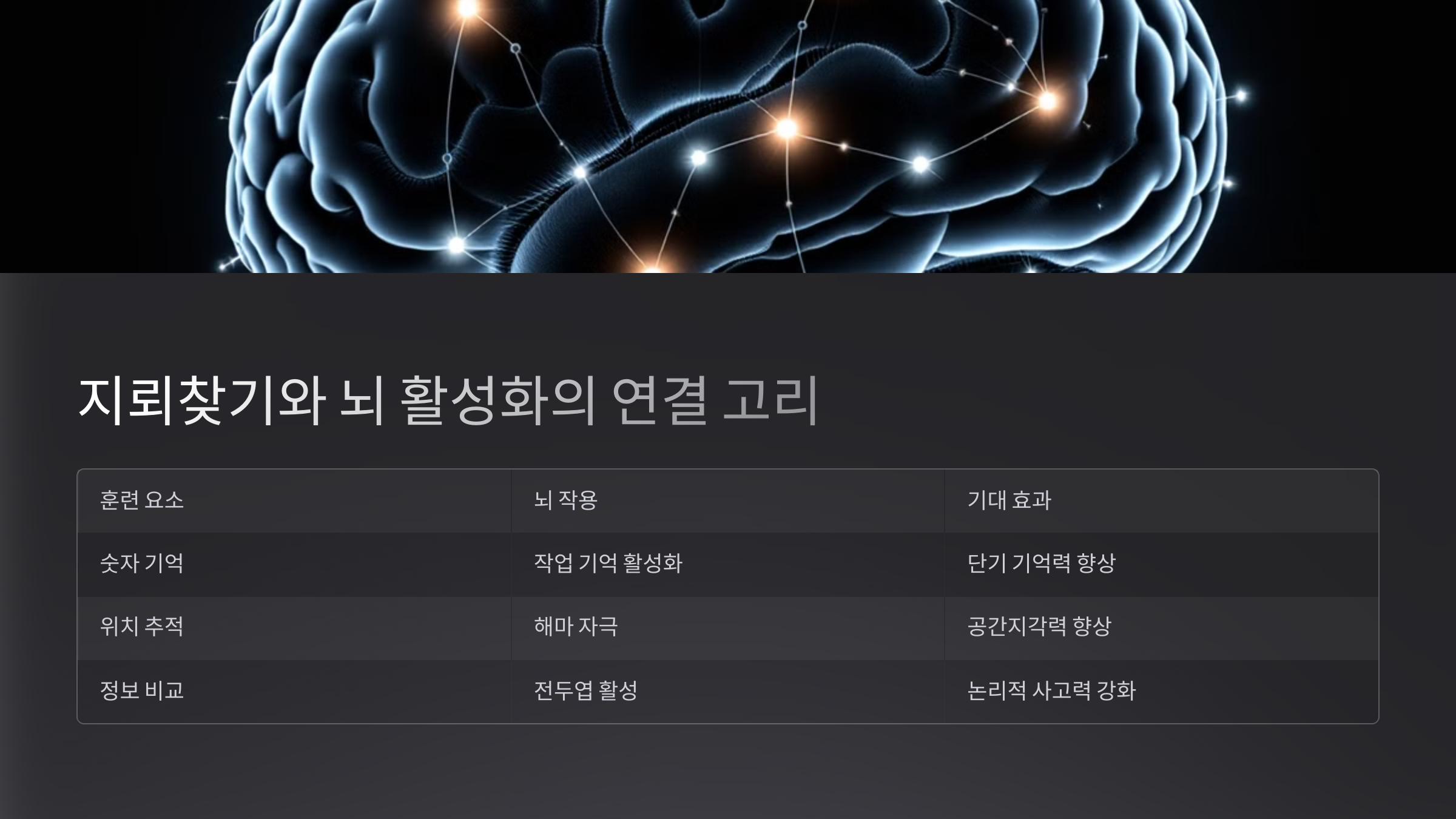 | 훈련 요소 | 뇌 작용 | 기대 효과 |