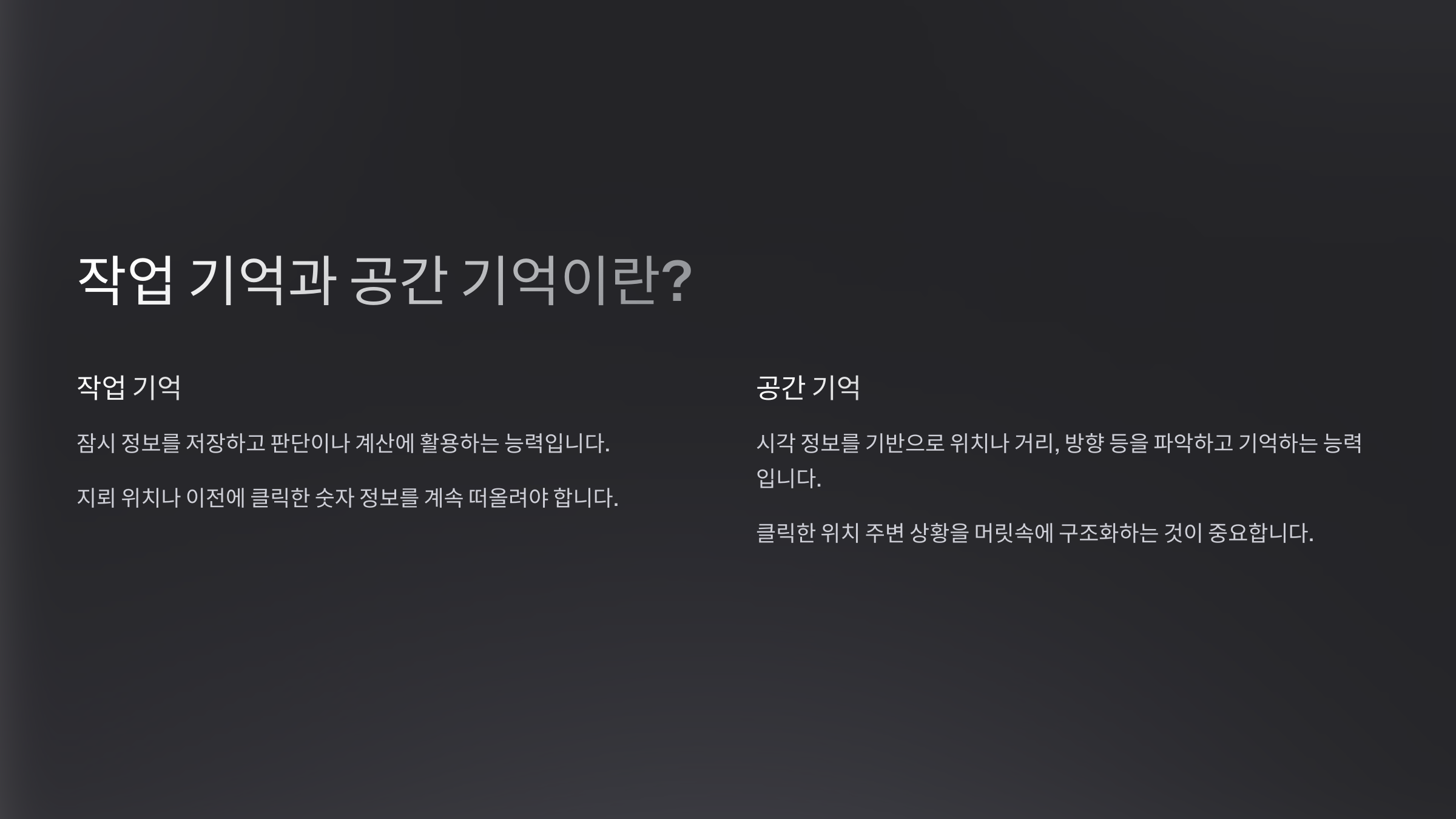 작업 기억과 공간 기억이란?