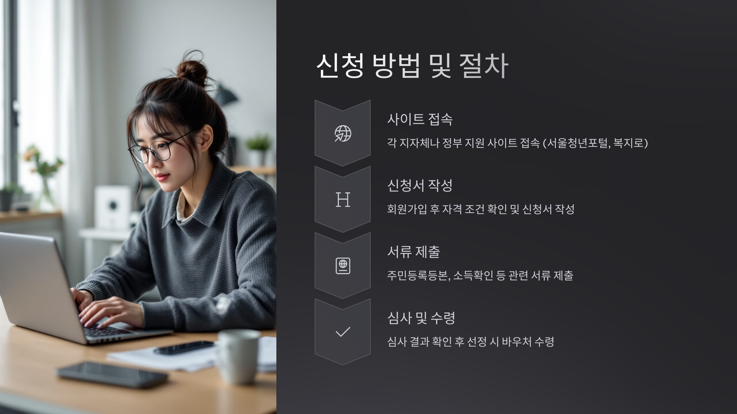 - 각 지자체나 정부 지원 사이트 접속 (예: 서울청년포털, 복지로)