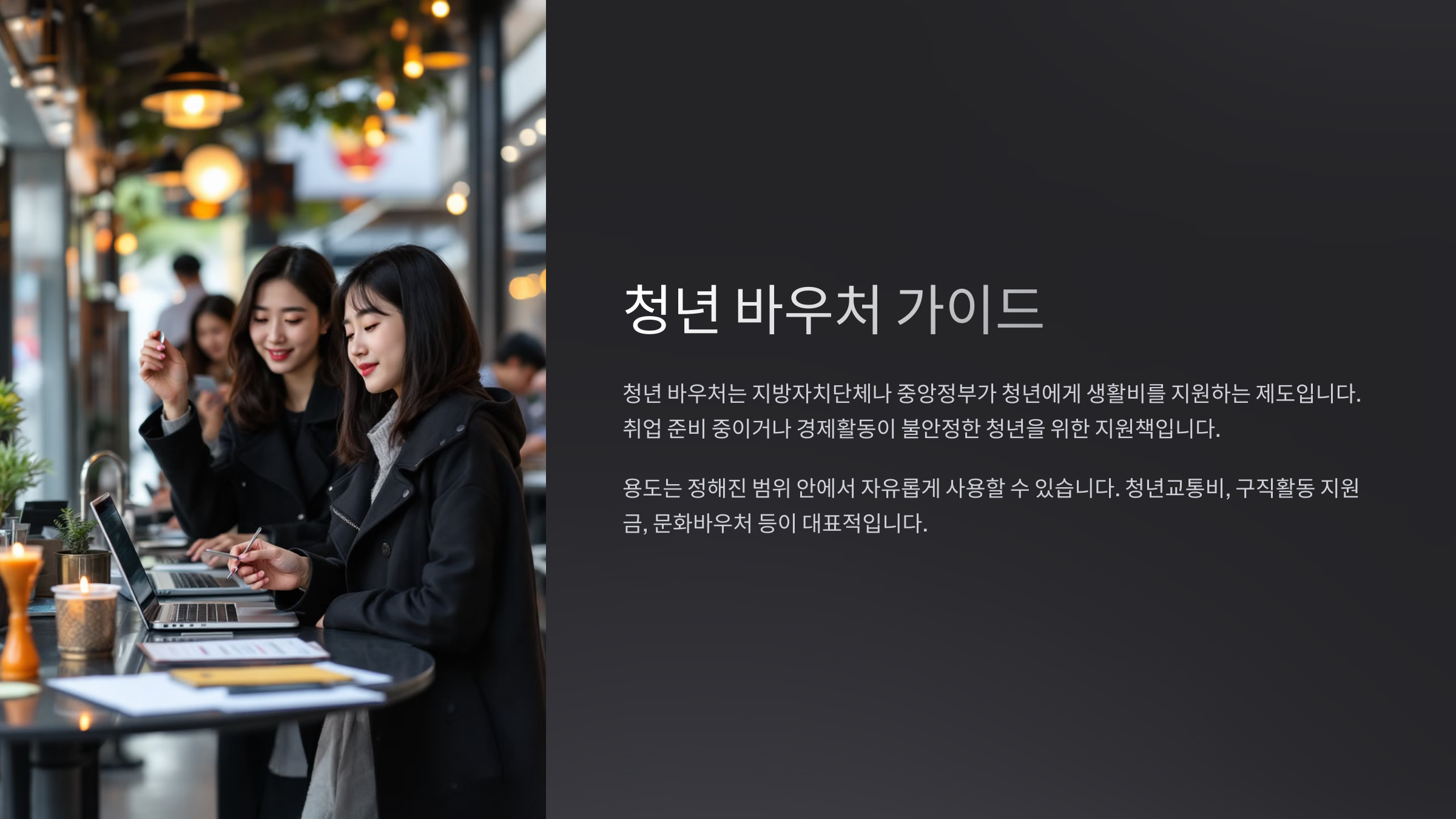 청년 바우처는 청년들의 생활 안정과 사회 진입을 지원하기 위해 정부 및 지방자치단체가 제공하는 실질적인 지원 제도예요. 교통, 문화, 구직, 식비, 의료 등 다양한 분야에서 사용 가능한 포인트 혹은 카드 형식의 바우처로 제공돼요.