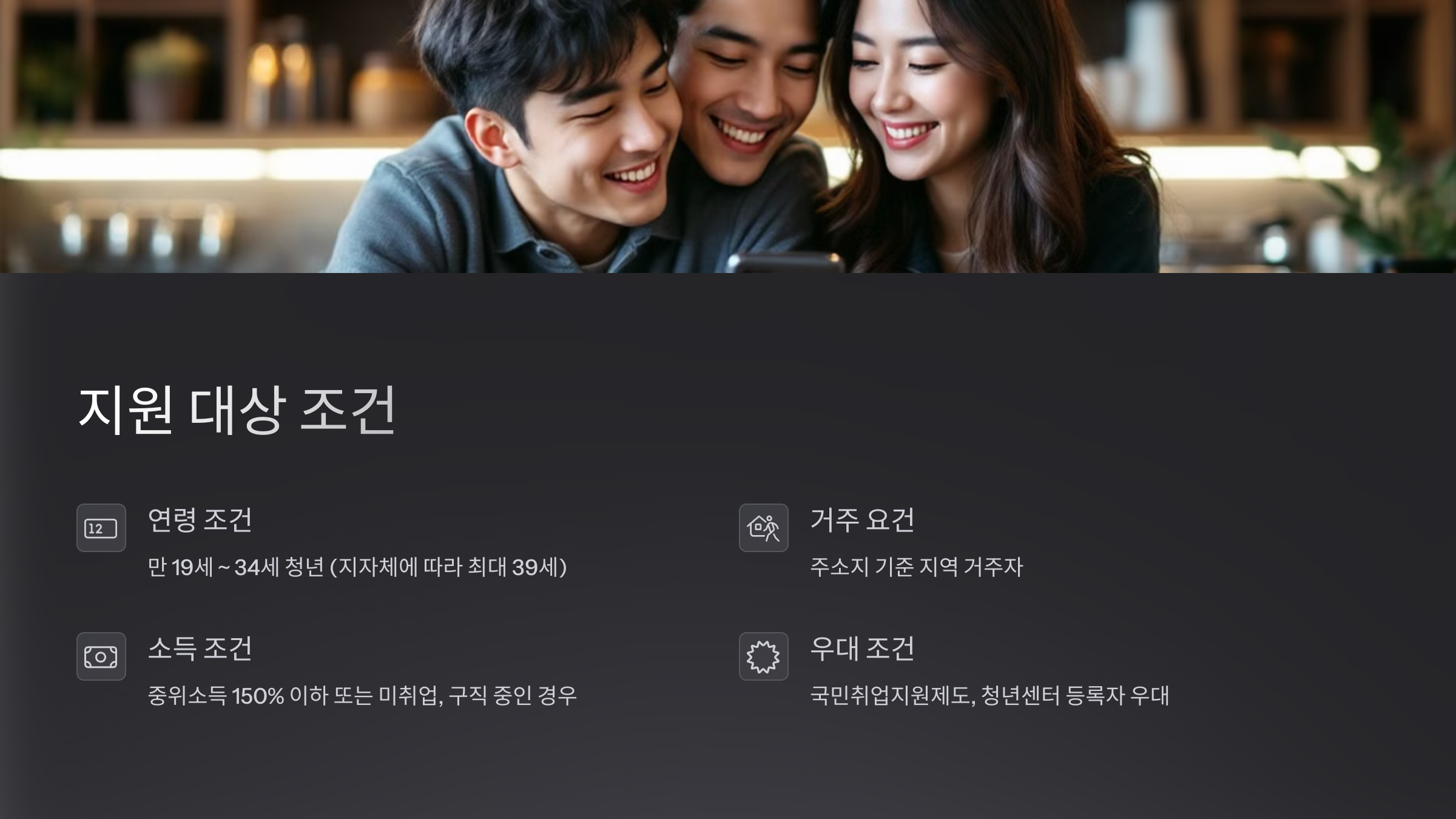 - 만 19세 ~ 34세 청년 (지자체에 따라 최대 39세)