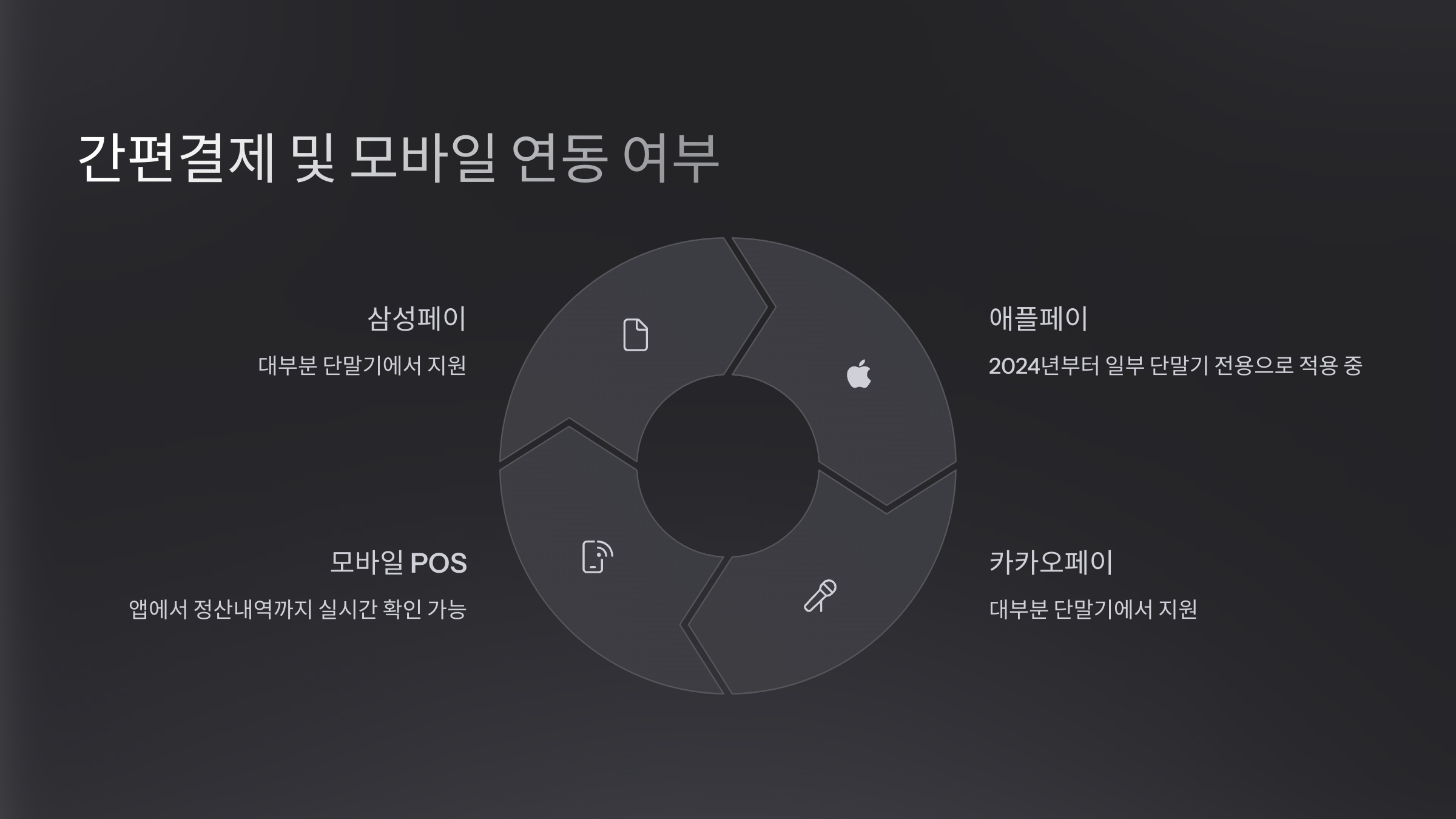 - 애플페이: 2024년부터 일부 단말기 전용으로 적용 중