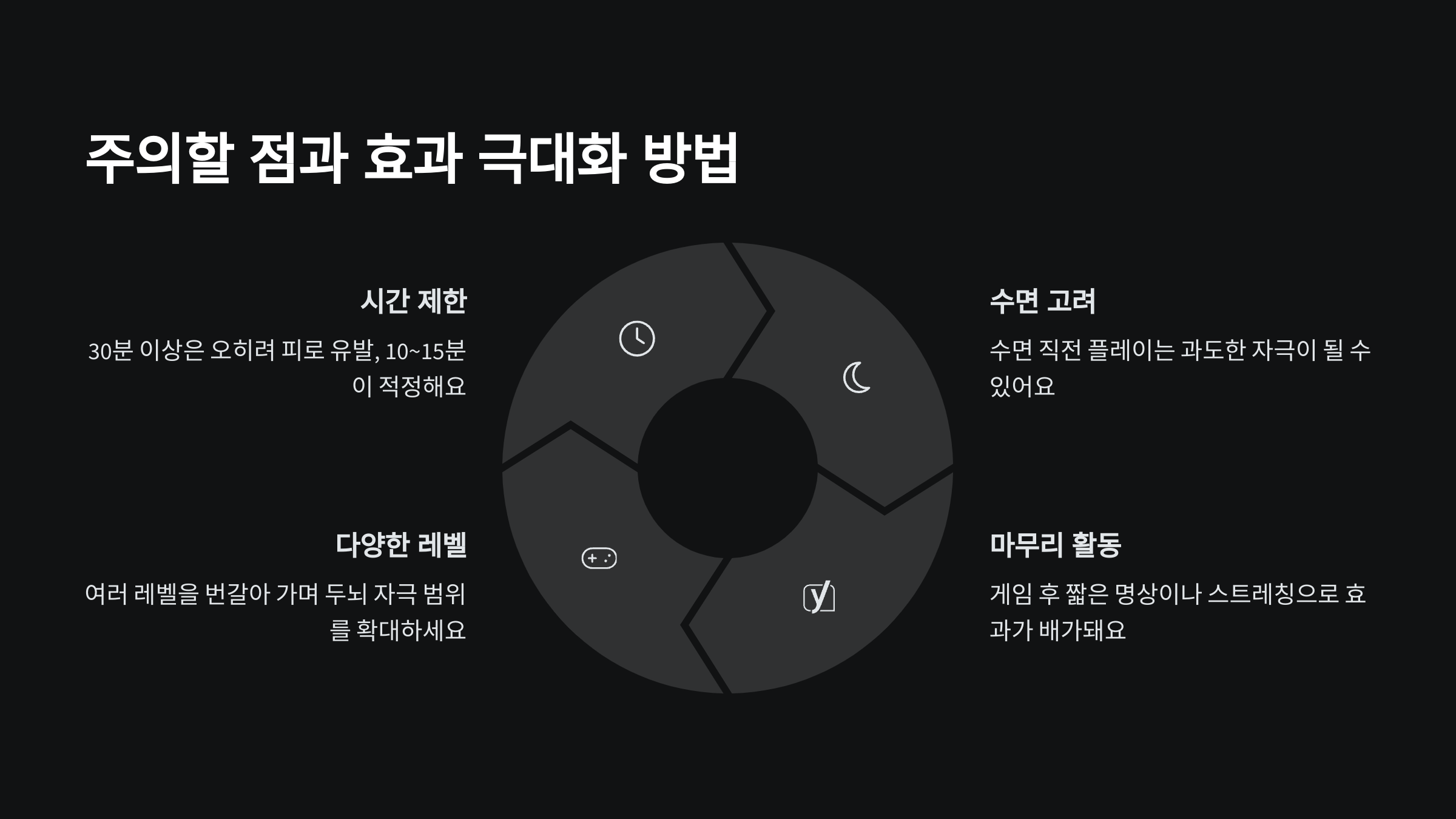 단순히 시간 때우기용 게임이 아니라 ‘생산적인 뇌 자극’이라는 마인드로 접근하는 게 중요해요.
