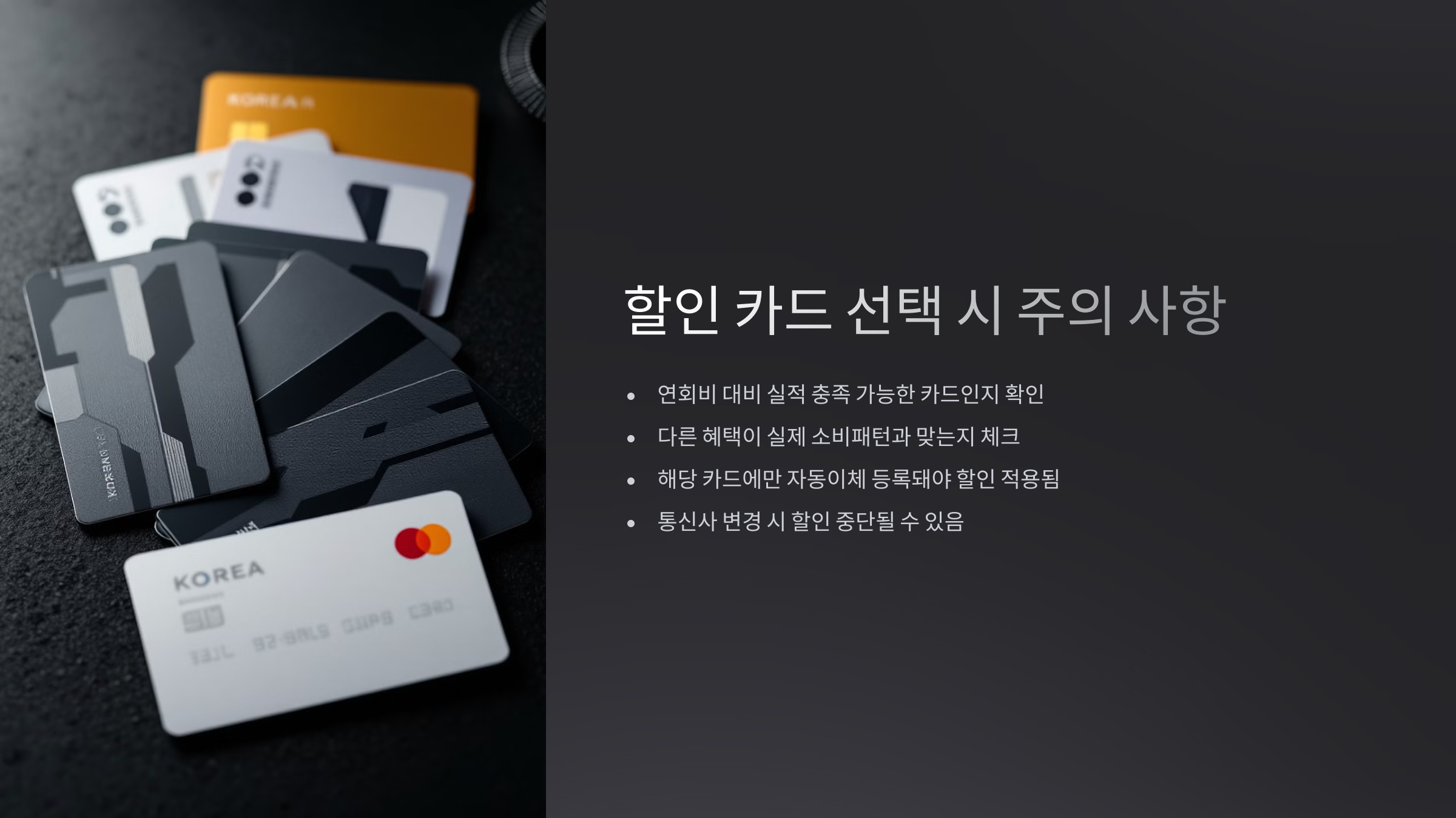 기준 미달이면 할인이 전혀 안 되는 경우도 있으니 실적 조건은 꼼꼼하게 체크해두는 게 좋아요.