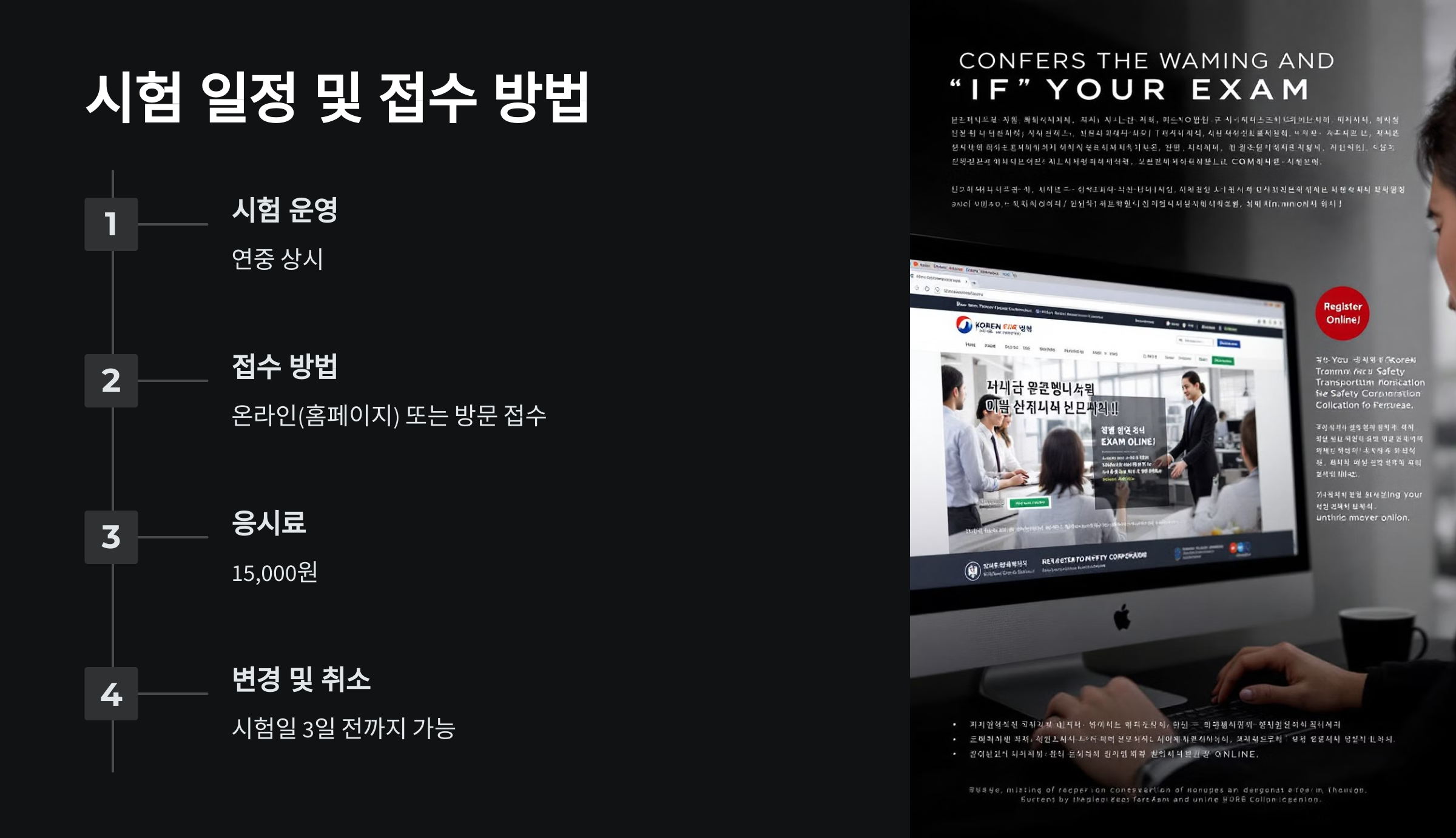 | 변경 및 취소 | 시험일 3일 전까지 가능 |